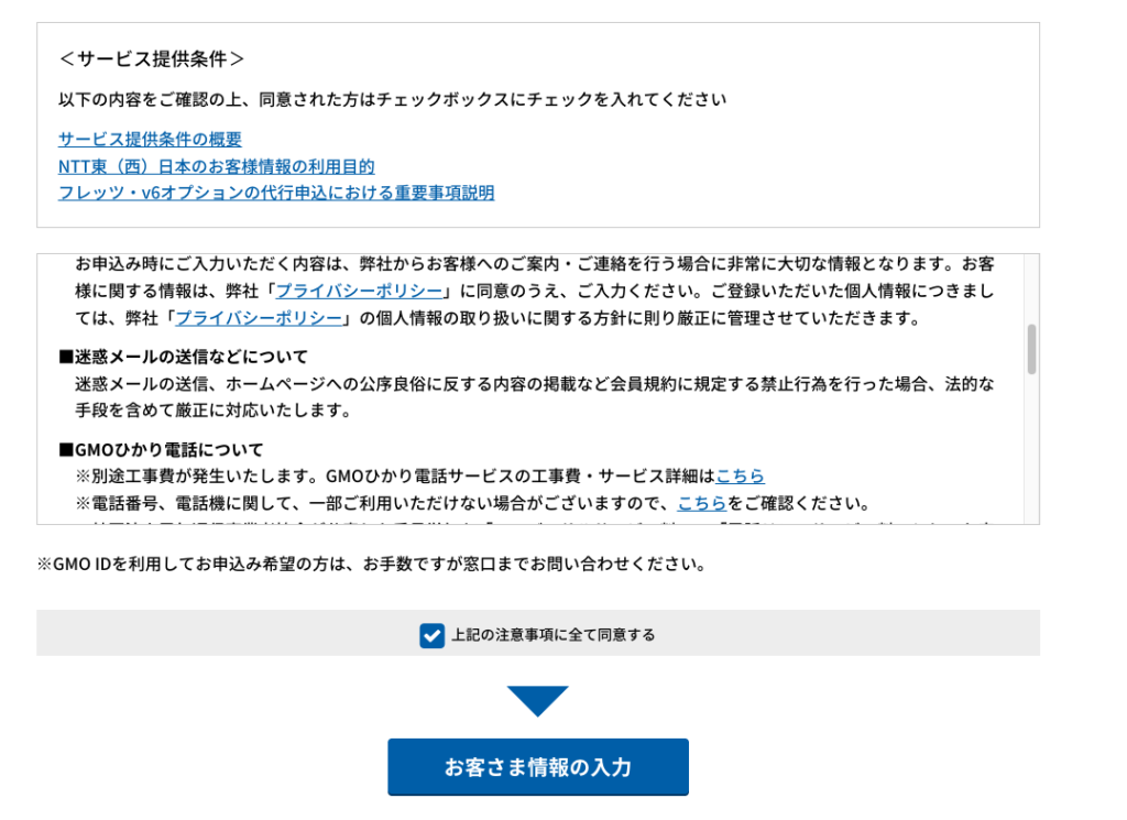 Sau đó bạn nhấn đồng ý điều khoản và nhấn vào nút お客様情報を入力