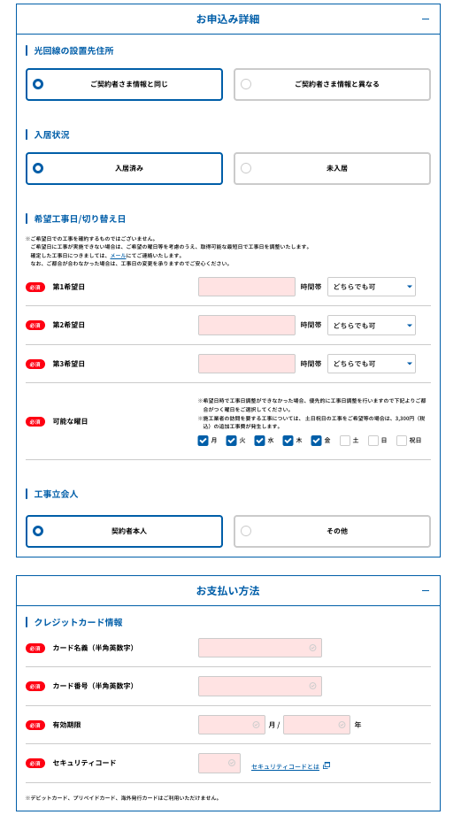 ・Nếu cần lắp đặt tại nhà, nhân viên thi công sẽ đến tận nơi. Nếu chỉ cần lắp đặt tại NTT, bạn không cần phải có mặt. Để biết thêm thông tin về công việc lắp đặt, vui lòng nhấp vào đây.