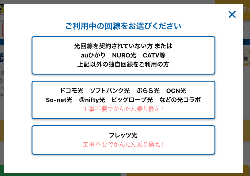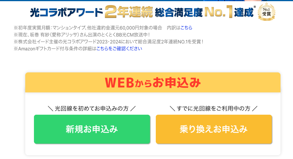 | Lợi ích của chiến dịch | ・Chiến dịch hoàn tiền lên đến 157.000 yên ・Phí lắp đặt về cơ bản là chiến dịch miễn phí ・Chiến dịch chi trả phí hủy khi chuyển đổi ・Cho thuê bộ định tuyến Wi-Fi miễn phí | |